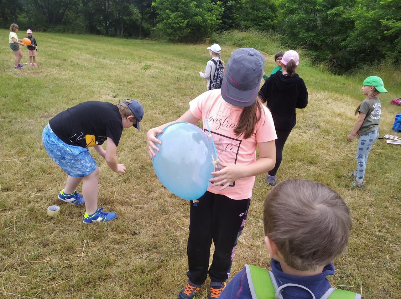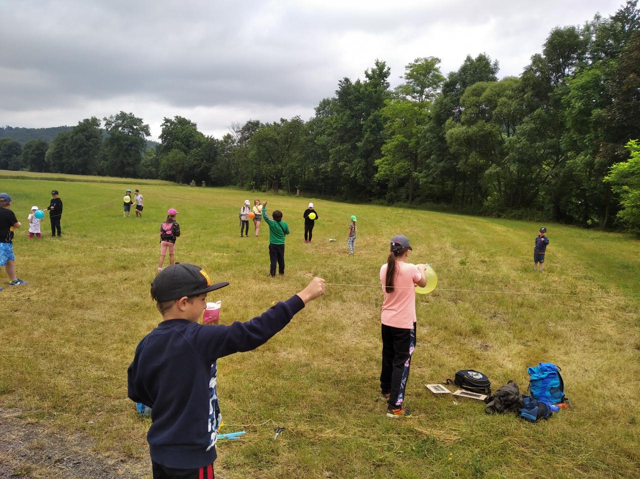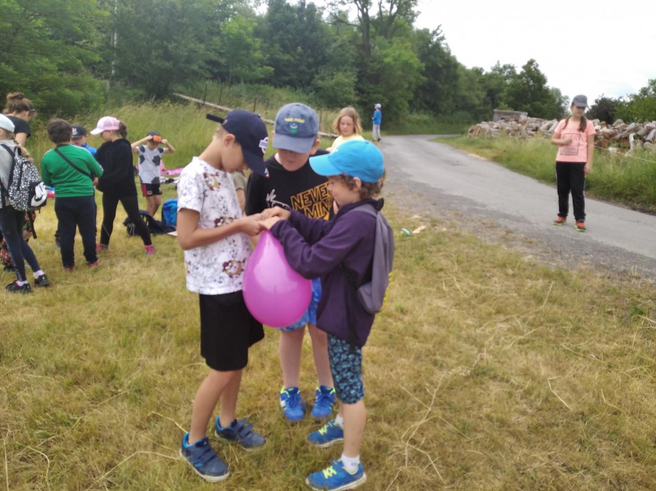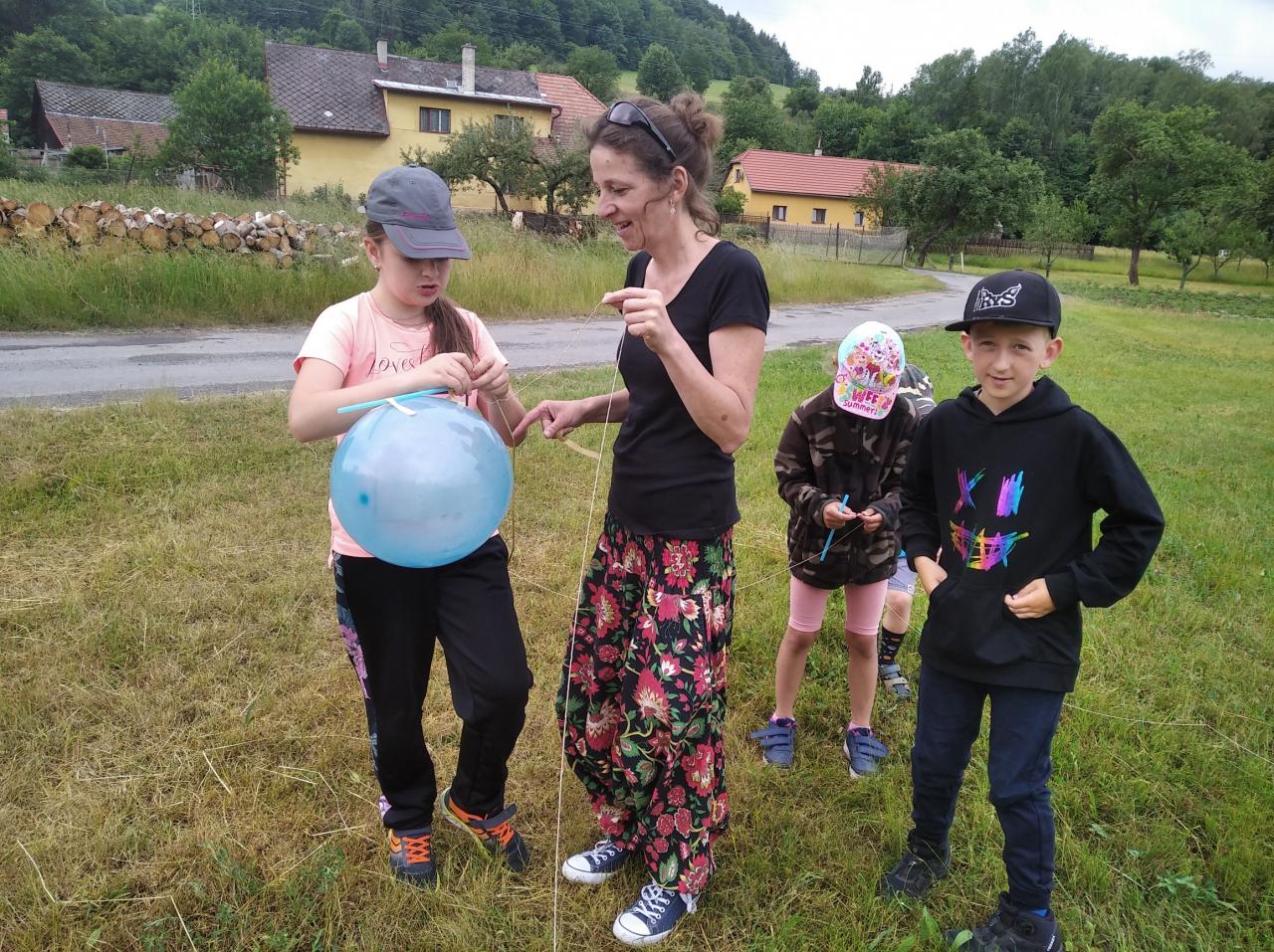 Cestou jsme poznávali rostlinym které si děti lepili na své rámečky. Na jedné ze zastávek si děti mohly vyrobit za pomocí nafukovacího balónku, brčka, provázku a kolíčku tryskový motor.